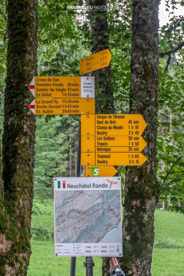 Below a map of the hiking trails at Creux du Van. Click to enlarge