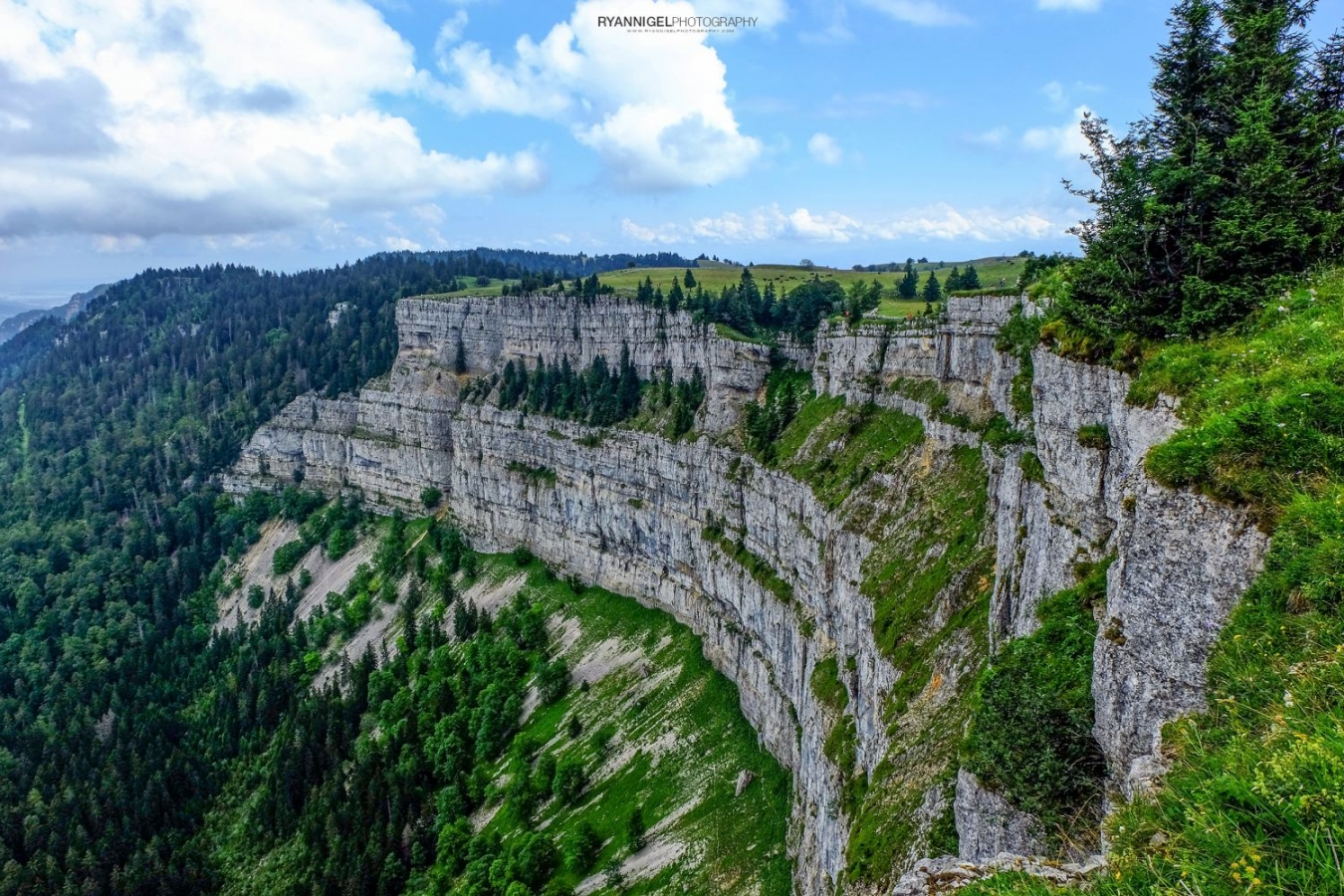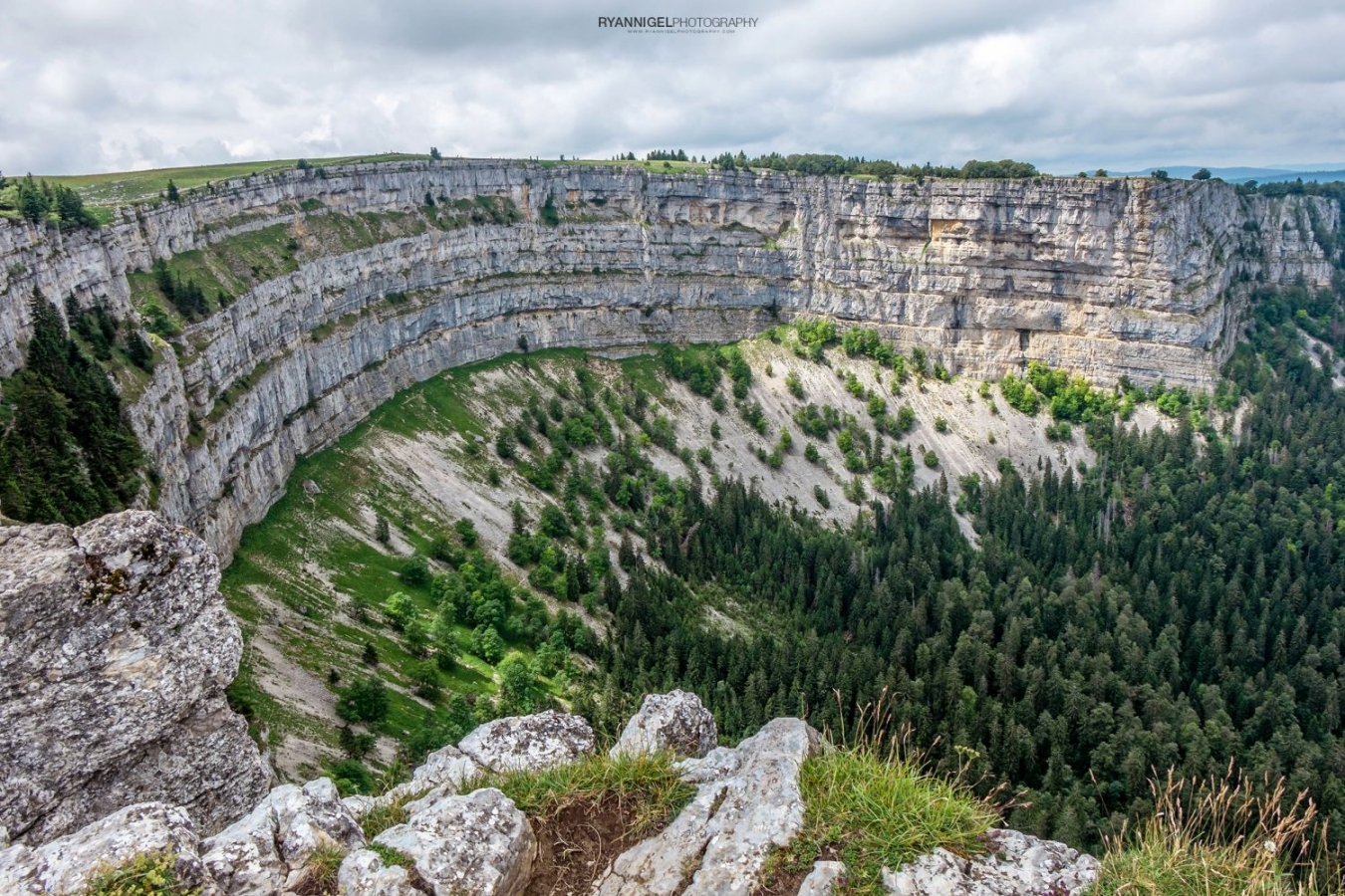 “The rocky cirque of Creux du Van is so many things: a botanical paradise in almost every season, a fascinating site with breathtaking views, a mountain wildlife reserve and a focal point of telluric energy. The circular cliff drops from its 150 m peak down a scree slope, with layers of chalk and brave or solitary trees clinging to the crevices.To walk around the cirque, there’s a path along the edge bordered by a dry stone wall. Sometimes, the path comes within a metre of the precipice. On the last third of the cirque, the view of the cliffs is more complete and more impressive, and this is also where you can come across the famous ibex. We’ll be back.” – Neuchatel Tourism