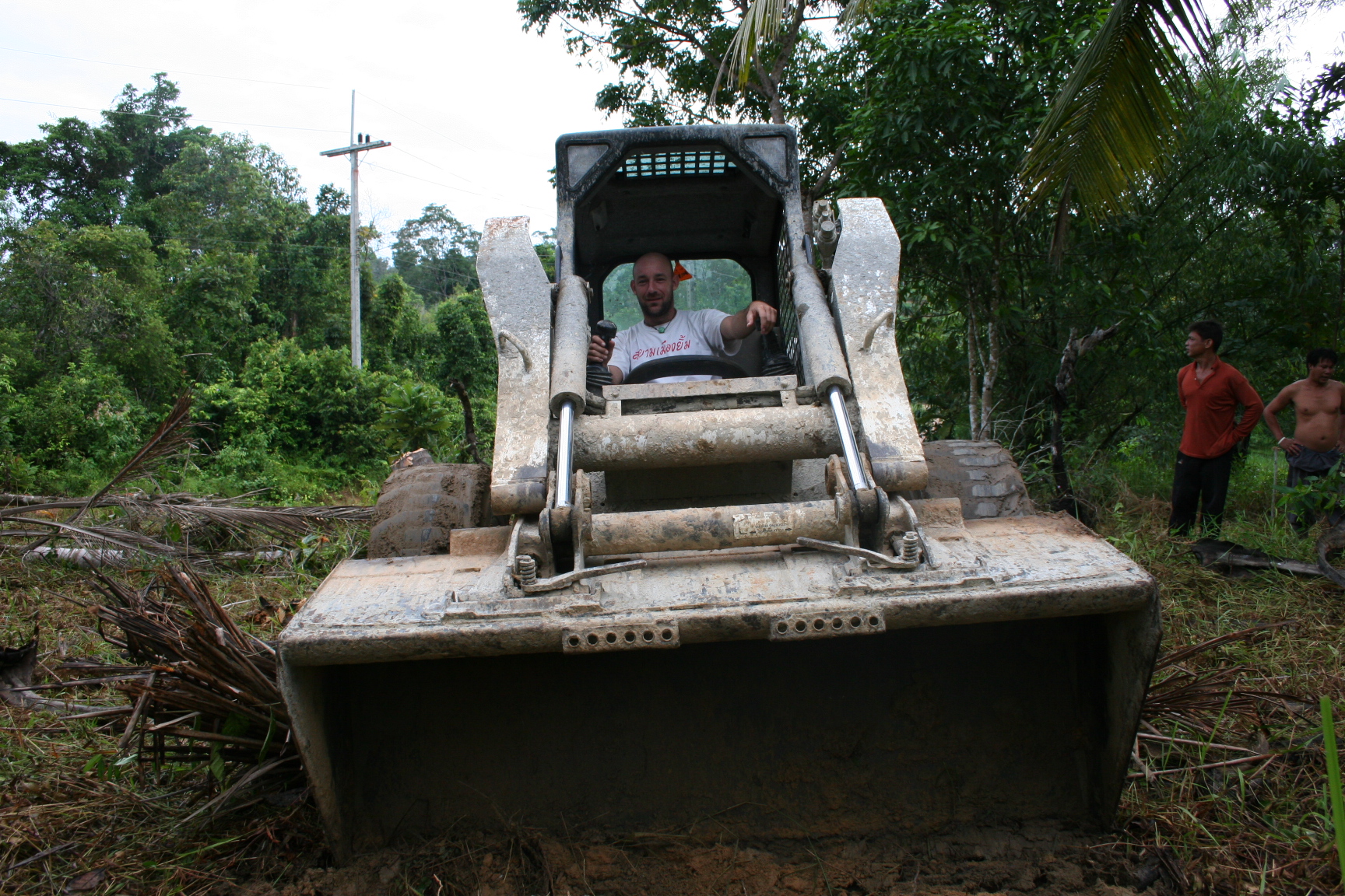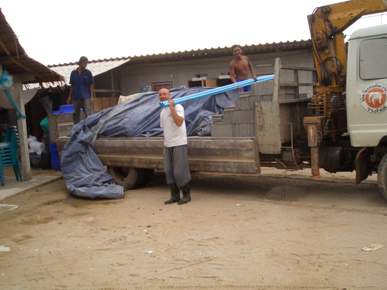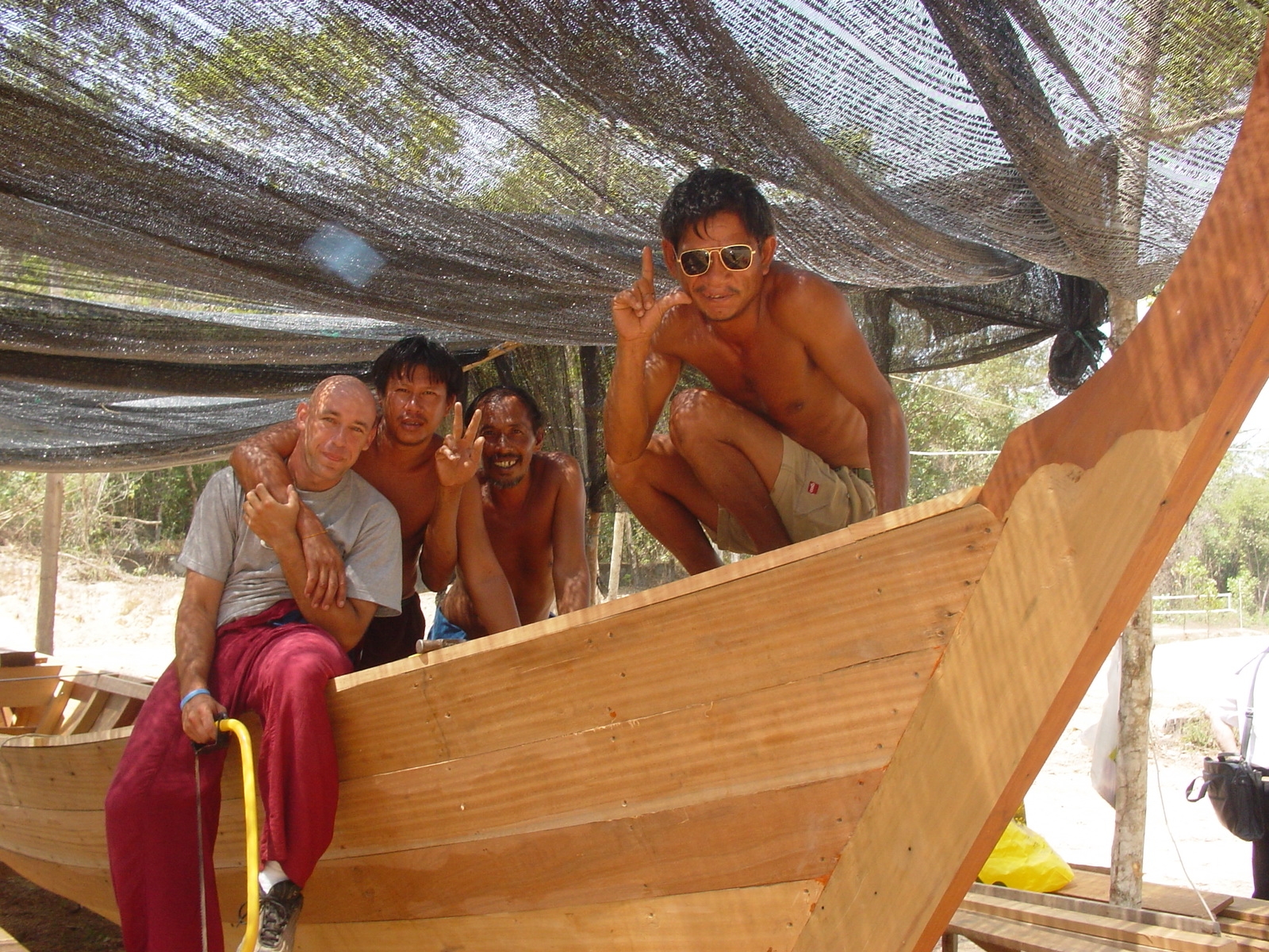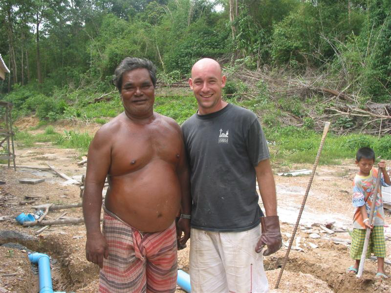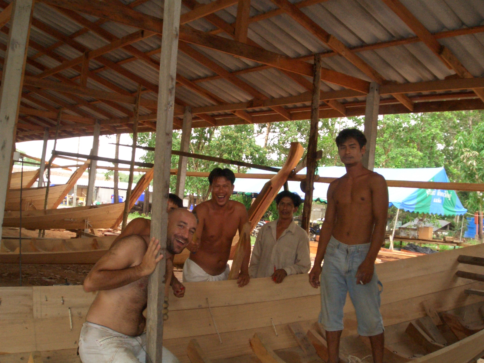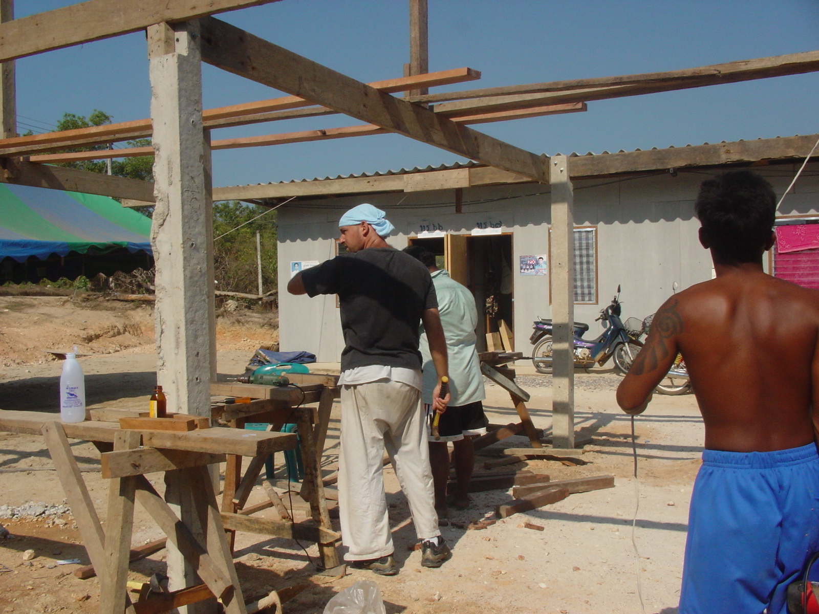My friend Yariv (a.k.a Robbie, the bald guy on the photos) and I were doing rescue work with the Thai Army and the Princess Red Cross. Also we did some projects like helping repairing the fishing boats, building shelters, getting food distributed and many many more things. In the end, we ended up building a complete village (12 houses) and 6 fishing boats. Oh yes and a pier. 🙂