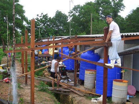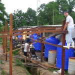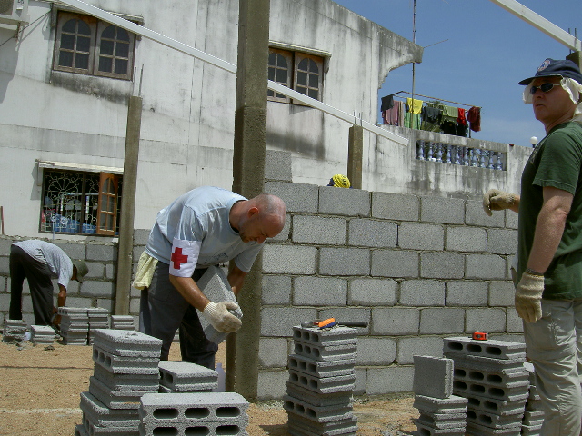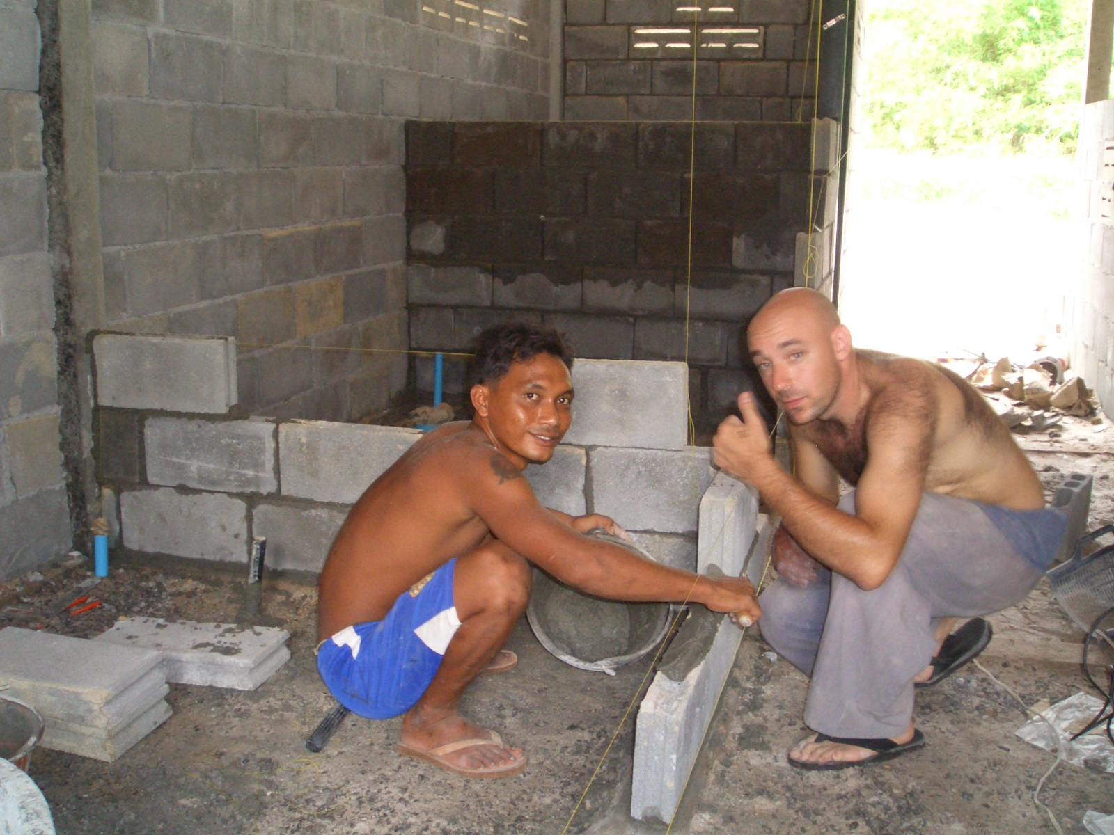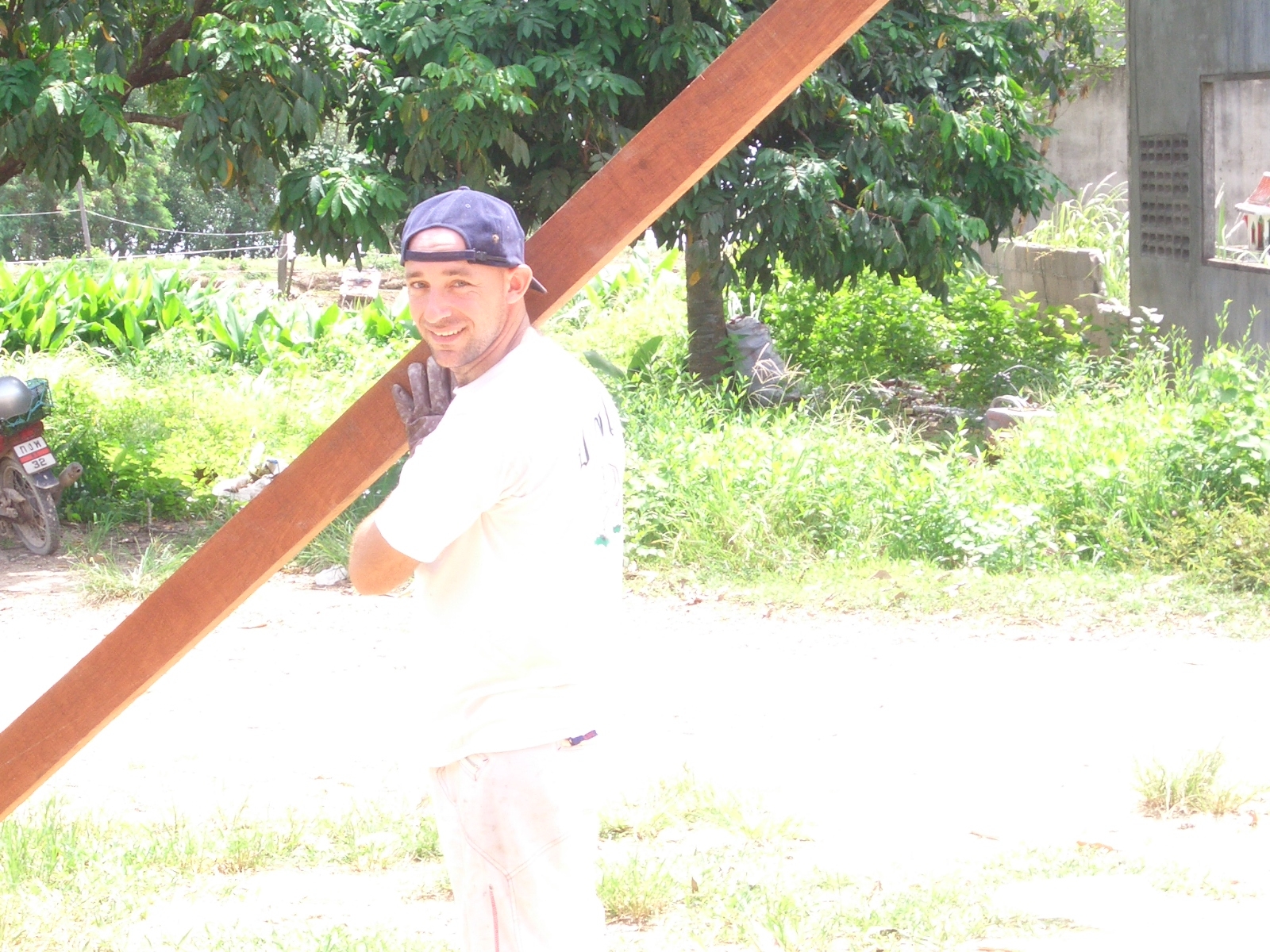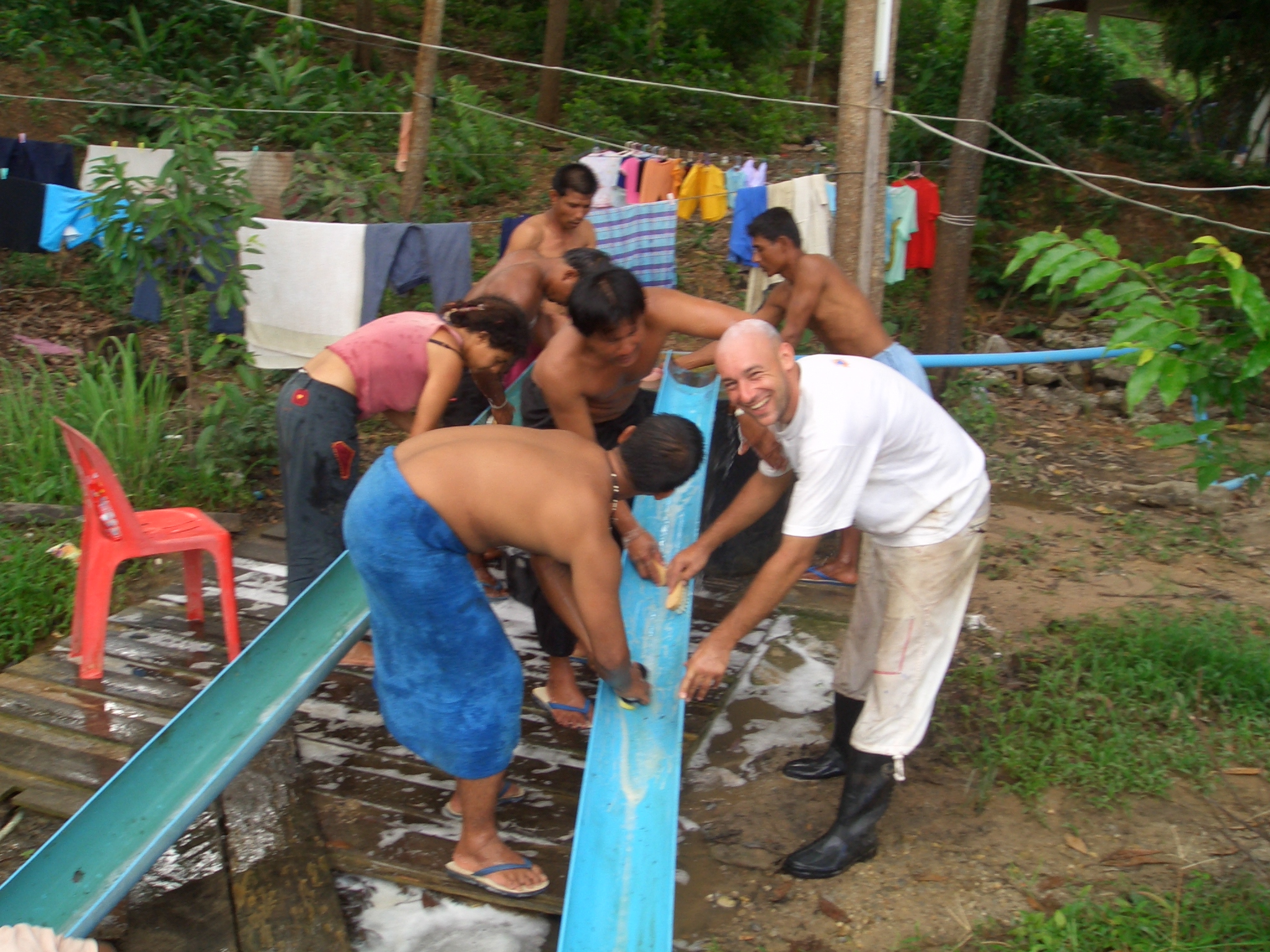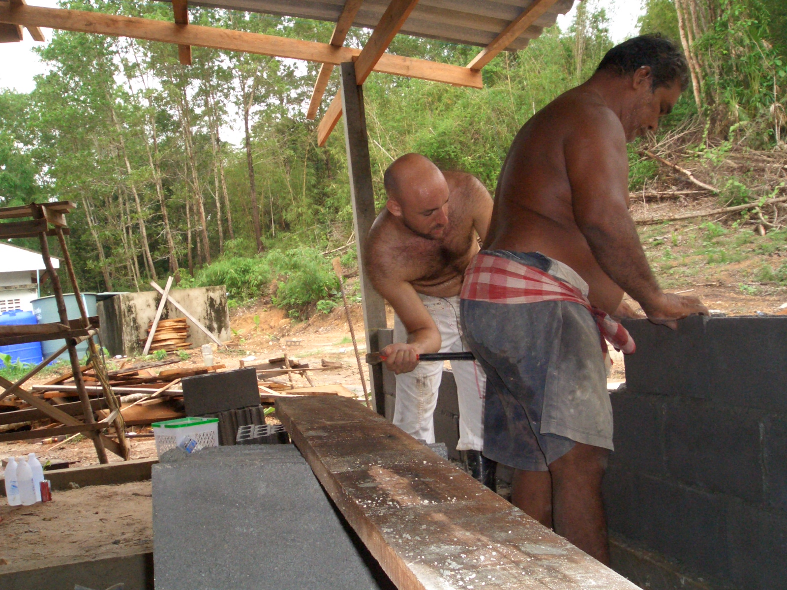 My friend Yariv (a.k.a Robbie, the bald guy on the photos) and I were doing rescue work with the Thai Army and the Princess Red Cross. Also we did some projects like helping repairing the fishing boats, building shelters, getting food distributed and many many more things. In the end, we ended up building a complete village (12 houses) and 6 fishing boats. Oh yes and a pier. 🙂