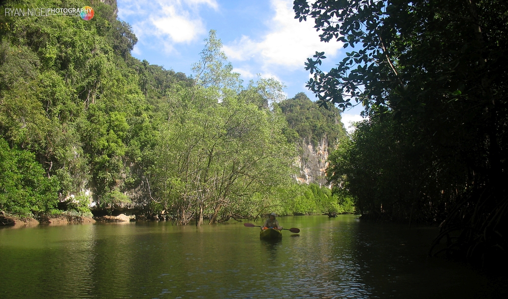 Than Bok Khorani is a National Park near Ao Luk Krabi in Thailand. It is a well hidden place and not yet overrun by mass tourism like Phang Nga Bay with its James Bond Island. If you plan a tour to Than Bok Khorani well, you can be there alone for at least 4 hours ! (I know, I went there quite a few times…:) ).