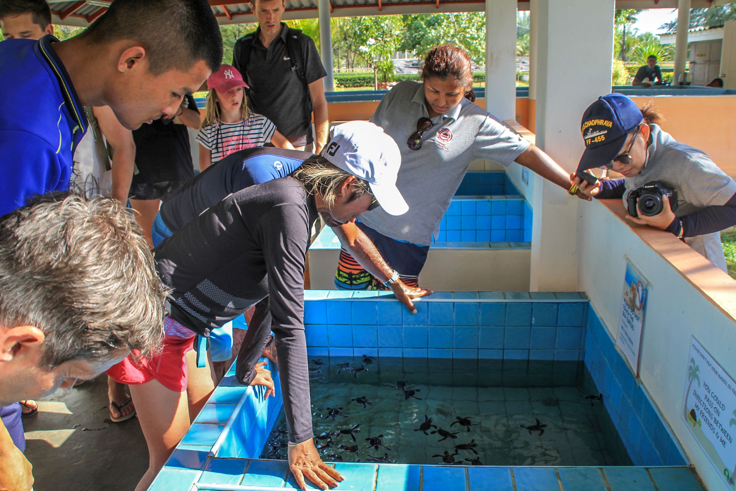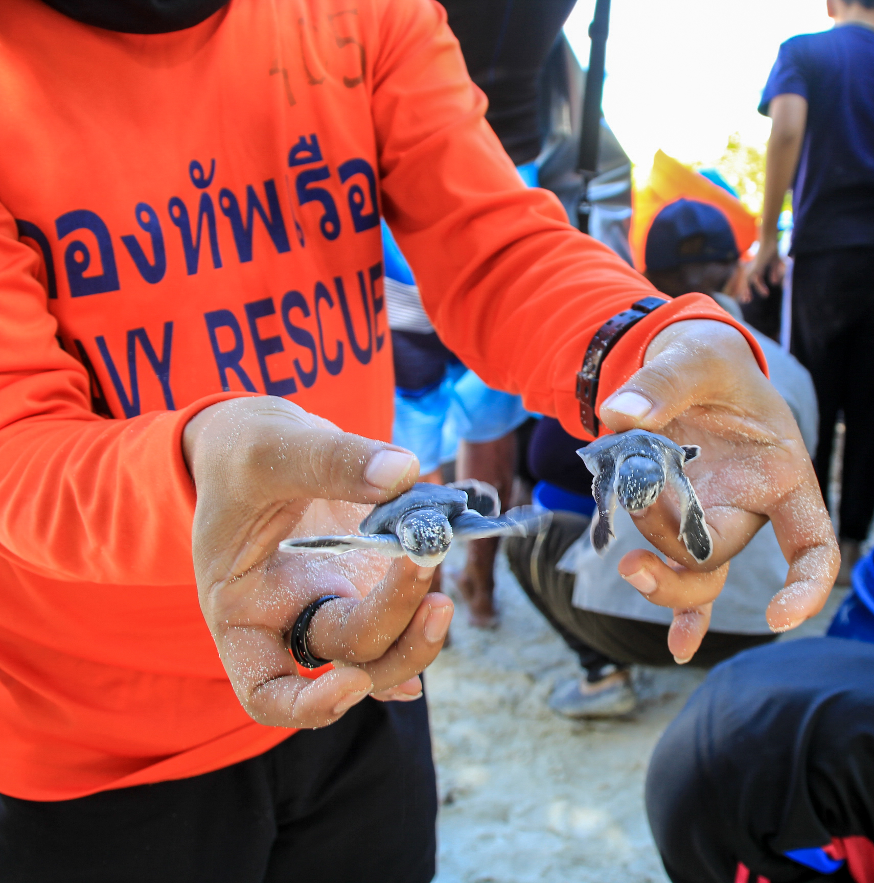 The trip was organized in coop with the Royal Thai Navy to give the kids more knowledge about the turtles and why it is so important not to pollute the sea. All in all it was a success !