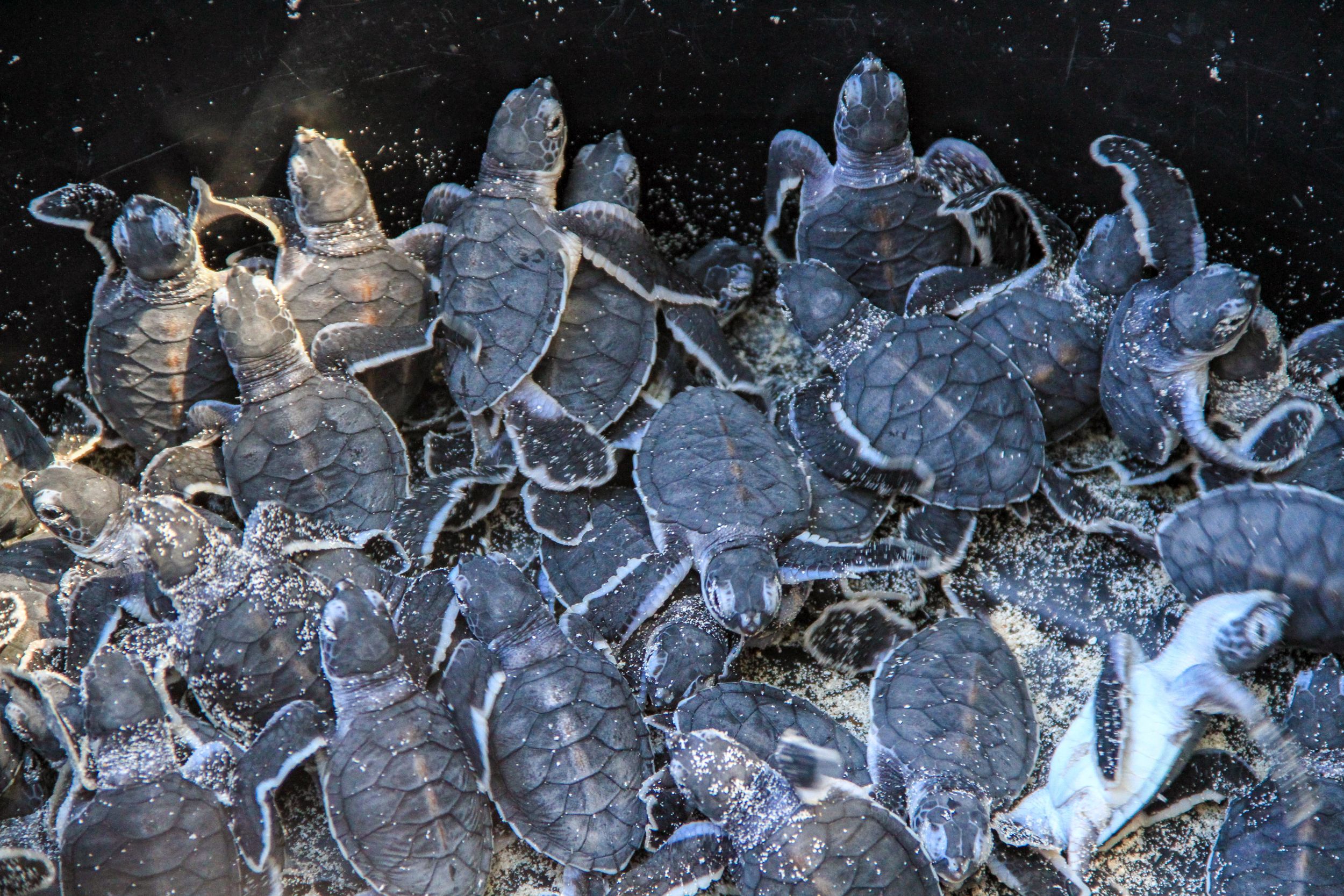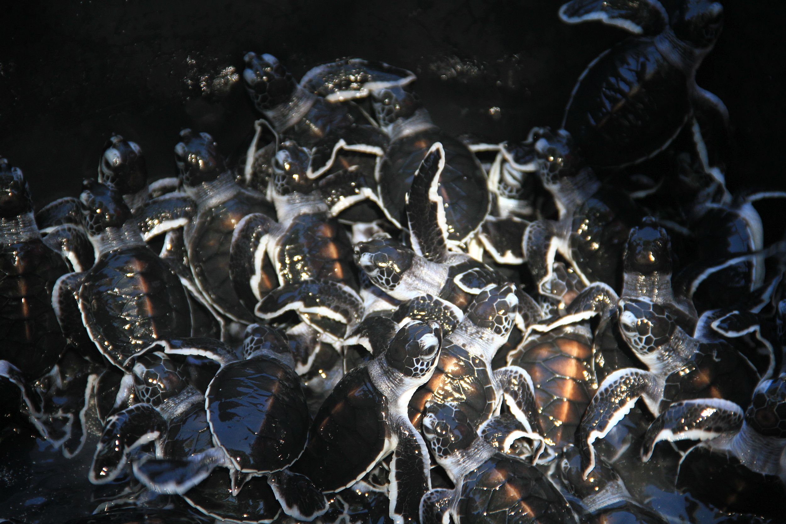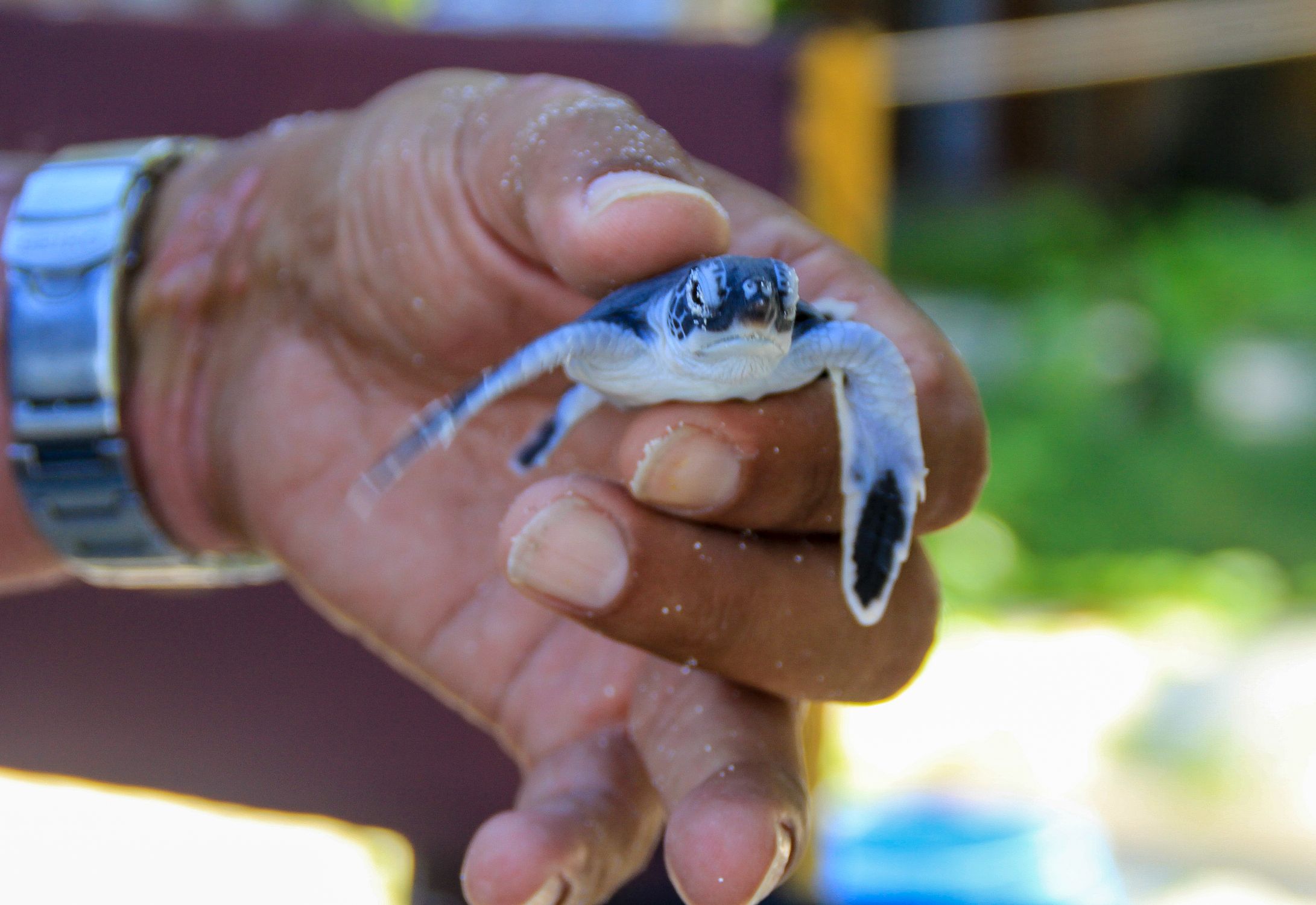 So how do we get them to the Turtle Conservation Center ? Well, simple. In a bucket and with my speedboat 🙂 At the conservation center they will go to a basin with saltwater (sea water). The basins are numbered: you have day old turtles, week old, month old, etc. They all been separated. Also by species. It’s not only green turtles: no, we got loggerhead and hawkbill turtles as well. And sometimes we have a leatherback turtle !